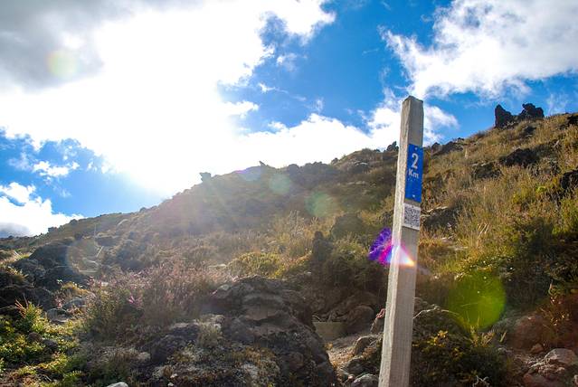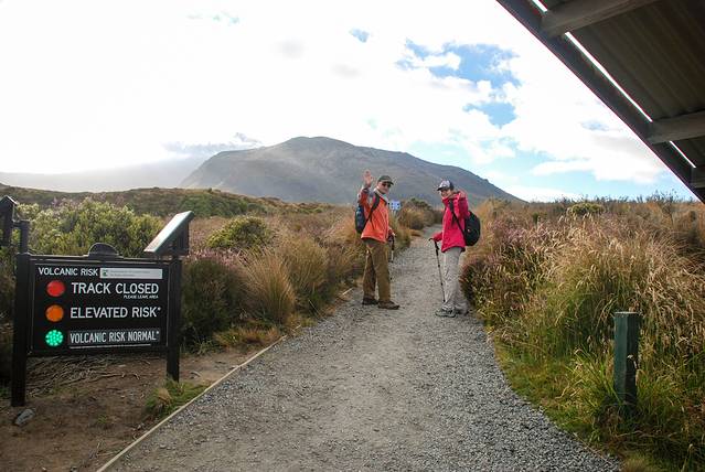 首先说下关于班车。我看到网上的攻略大多都是35纽币一人左右的班车,但是因为考虑到我和老爸的体能没有那么好,而且要照相,爬赶不上3点到4点回来的班车(因为网上有人说赶不上不等)所以我们只能寻求其它方法。因为我们人多,同行的老妈不怕而且翻译了驾照,所以我们打算让老妈送我们。去National Park Village的路上会看到起点的路标,而终点的停车场离village也只有半个小时车程。所以如果大家同行的人中有不爬的可以自驾前往,省省钱。当然爬的路上我们碰到了一大家子中国人,其中一位先生惊人的用了4个小时走完19.4公里!!他们采用的则是这位先生率先坐班车返回取车然后开到终点接其他同伴。如果大家中有这样的神人,也可以采用这样的方法省钱。