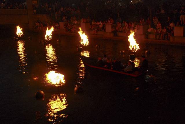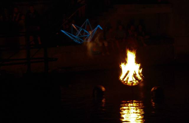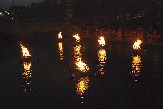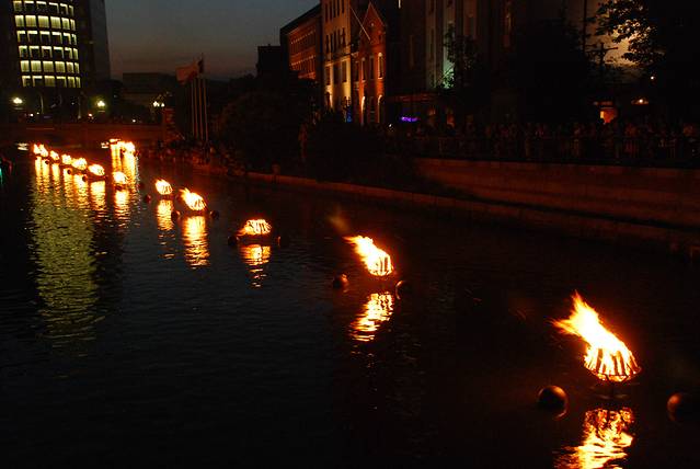 刚到的那一天是美国时间的周六。很巧的是,基本每个周六晚上的时间,都是当地很有名的water Fire的活动。Water Fire是为了慈善募捐而由不同主办方举办的水上篝火晚会,我到的那个周六的举办方刚好就是布朗大学,于是出于好奇我也去捧了捧场~Water Fire的举办地在普罗维登斯城内惟一的一条河上,所以地点很好找。而且提前半天周边就会戒严,所以哪儿人多哪儿就是啦!