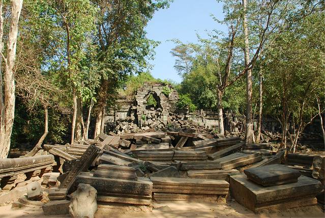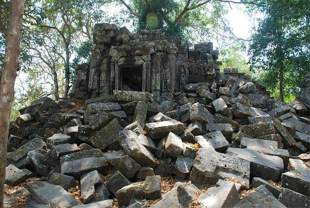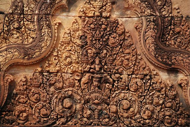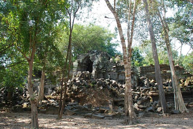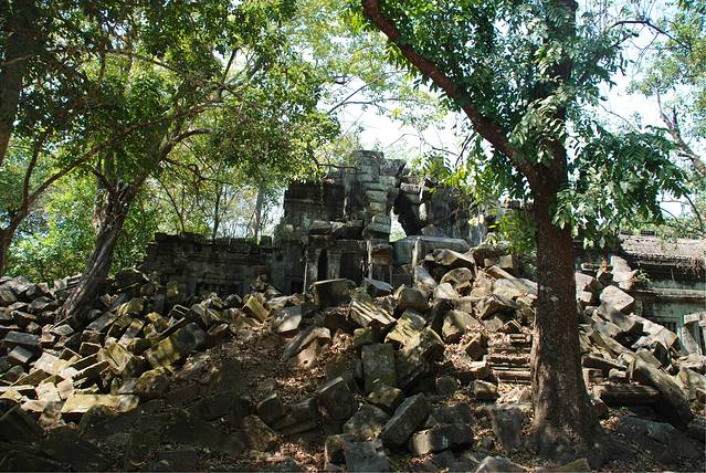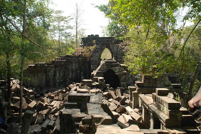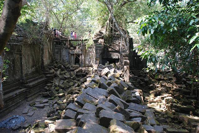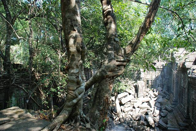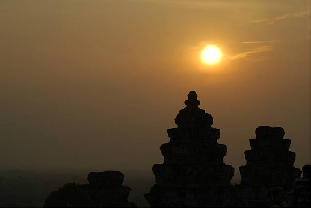 吴哥的景点相对密集,只有女王宫和洞里萨湖、崩密列相对较远。这些景点我不想多说,向大家推荐一本书吧,叫《柬埔寨和吴哥寺》是走遍全球系列最新版,日本大宝石出版社编著,中国旅游出版社出版的。里面包含了很多内容,包括了各个景点,注意事项,餐饮酒店之类的,很全的。我在这里就说几个我认为不错的。小吴哥是一定得去的,世界七大奇迹之一嘛,去小吴哥看日出那天天气不好我们没有看见,但是看见当地领队照的照片,还是挺美的。现在的日出时间大约在7点左右,要想让太阳从小吴哥的主塔升上来这个时候就要坐在相对靠左的地方。早上还是有很多人看日出的,所以跟着大部队坐就成了。除了小吴哥,我还有一个是希望大家一定去看看的,那就是崩密列。这是吴哥城里唯一没有经过任何修缮的,而且是静静的沉睡在林中,完全是原始风貌。塔普伦寺是拍摄古墓丽影的地方,也可以去看看。