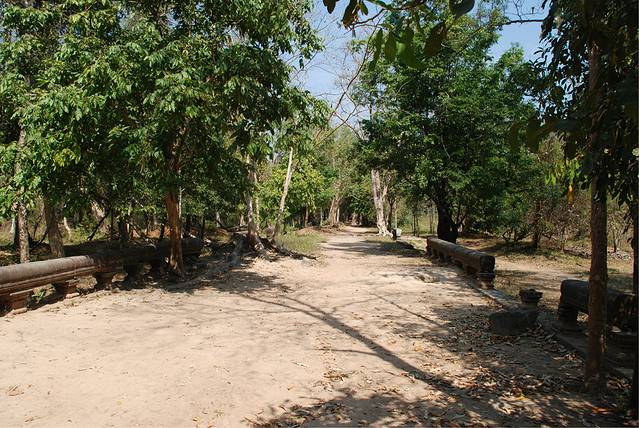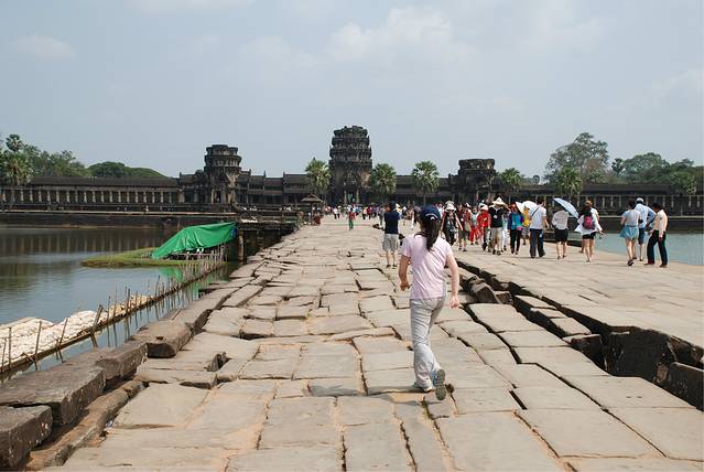 小吴哥护城河上的桥,坑挖的是以前的道路