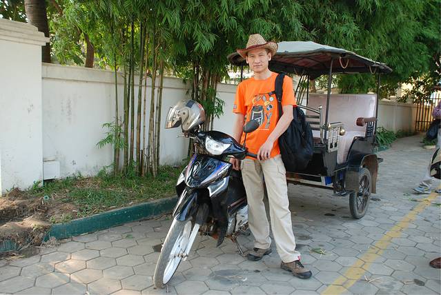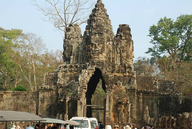 吴哥并不大,当地的主要交通是嘟嘟车。有点儿像我们胡同游的三轮,只不过前面是一辆摩托车拉着。因为就做过一次,所以没有搞清楚是不是按人头收费,如果是的话应该是一个人1美元。 在市中心的时候就没有必要坐车了,地方挨的都比较近,腿儿的就ok啦。我们参团当然安排在日程里的地方都是大车接送,比较方便,就是地点不能随意安排,不是很灵活。