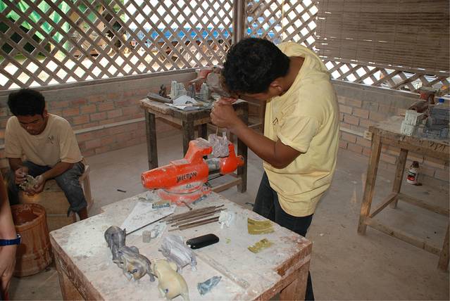最有名的当属老市场了,那里面的东西价格相对低廉,质量也一般,一定狠狠杀价。这家不同意还有别的家,卖的东西都差不多,换换总有合适的。还有一家是法国人开在当地的艺术学校,里面的职工都是柬埔寨当地孤儿,残疾人士。里面的东西质量好,而且是纯手工制作,但是不可以砍价。这家叫Artisans Angkor。机场的免税店也有这家。