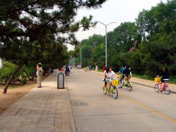 沿着海边一直走,从沙滩上来就是这条路,名叫中海滩路。这条路很干净,两边有郁郁葱葱的树林,偶尔会有几个小花园,路边尽是花坛或是可供休息的木椅子,