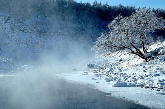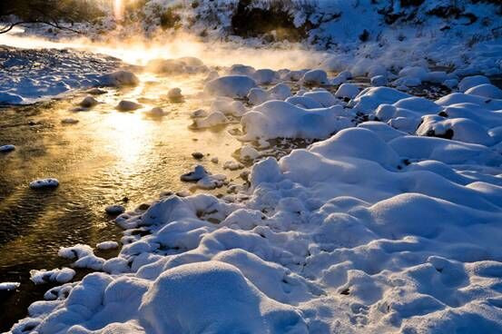 走进这银装素裹的童话世界,各种冰挂景色随处可见,温泉河流雾气缭绕地流淌在冰雪中,构成了一幅壮美迷人的冰雪画卷。所有桦木、冷松上戴玉披银,如朵朵白银,排排雪浪,有如被尘世遗忘的仙境,让人不忍碰触。