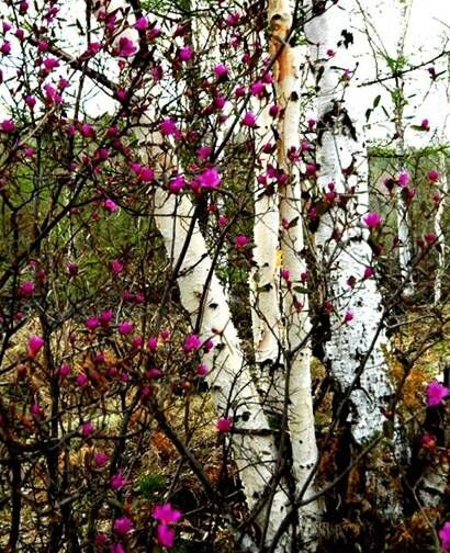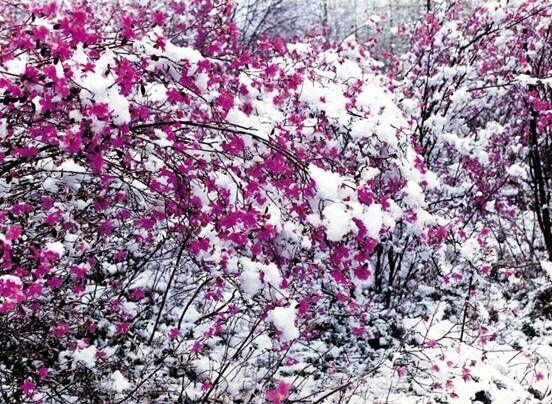 阿尔山的春天总是姗姗来迟。雪还没有尽化,奥伦布坎满山遍野的杜鹃便争先恐后怒放了,似彩霞飘落,如彩虹悬山,好一个“云雾林中生,瑞雪伴花红”,白雪与鲜花争奇、鲜花与白雪斗艳。