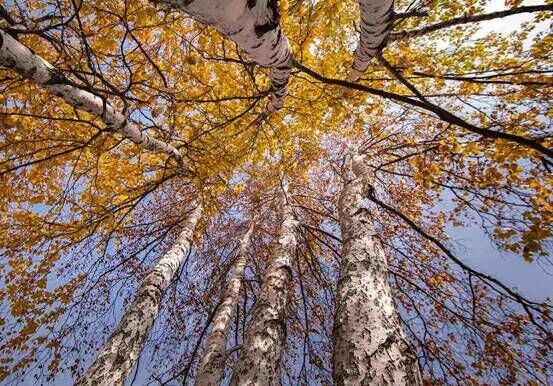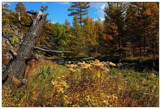 深秋的奥伦布坎,充满了极其绚烂艳丽的颜色,比油彩更凝重,大块白色云朵衬着透蓝的天空,一座座木屋坐落在起落平缓的草坡上,孤独的炊烟和犬吠,犹如金色的童话世界,草原上自由吃草的黑白花牛,袅袅亭亭的白桦林,就这样线条简单地勾勒出一幅辽阔广袤的壮美景致,足以让你找寻到真实的自己。一种悠然而至的沉静和博大、一种坚定不移的硬朗,没有丝毫的造作妖娆。