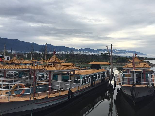 吃饱后,已经迫不及待要借着晚霞一瞥洱海。