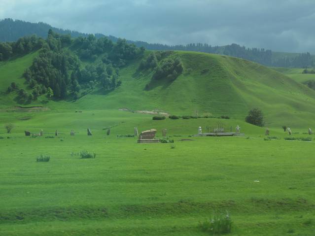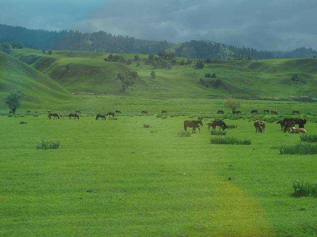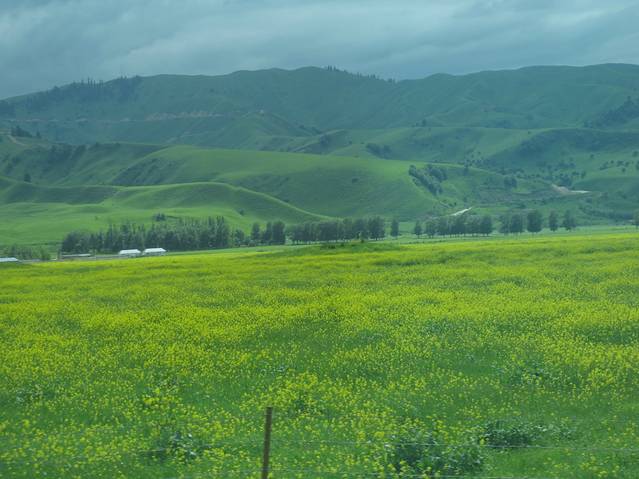 早上一早就到了伊宁市,天还没有亮,伊宁市刚下过雨,很冷,翻箱倒柜的把”厚“衣服找出来,在等了导游半个多小时后,终于来接了。今天主要是去那拉提草原,因为去那拉提草原的告诉路正在修,所以来回往返原本5个小时左右的车程,变成了10个小时。在新疆旅游,就是在汽车上旅游,晕车的人真的不推荐来新疆。上图: