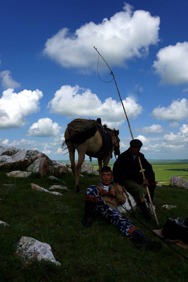 7月,是草原最美的季节。下了飞机,就驱车去去阿巴嘎旗,这里有著名的“阿巴嘎哈日阿都(黑马)”。不到草原,不知道什么叫辽阔,无边无际的绿色一直延伸到天际,站在草原上,没有河流的指引,完全没有方向感。脚下松软的草地,长着不知名的草,一阵阵芳香进入呼吸中,拔起一颗草,问当地牧民,这是什么,他们说这叫“臭草”。诧异间,问为什么这么香的草叫“臭草”,他们说你是觉得它香,但是不能多闻,它会把你熏晕的。啊!让我沉醉在这片松软的草地上吧!