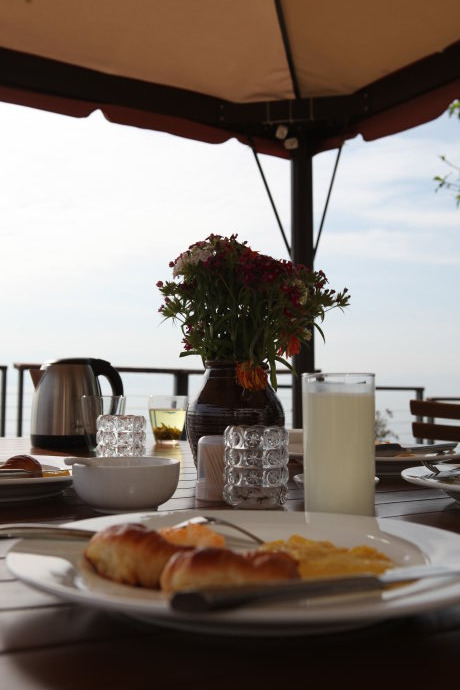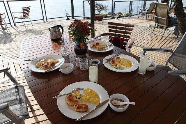 这是一个晴朗的早晨,在云渡美丽的临海露台上,我们享用了老板阿翔亲自做的早餐。