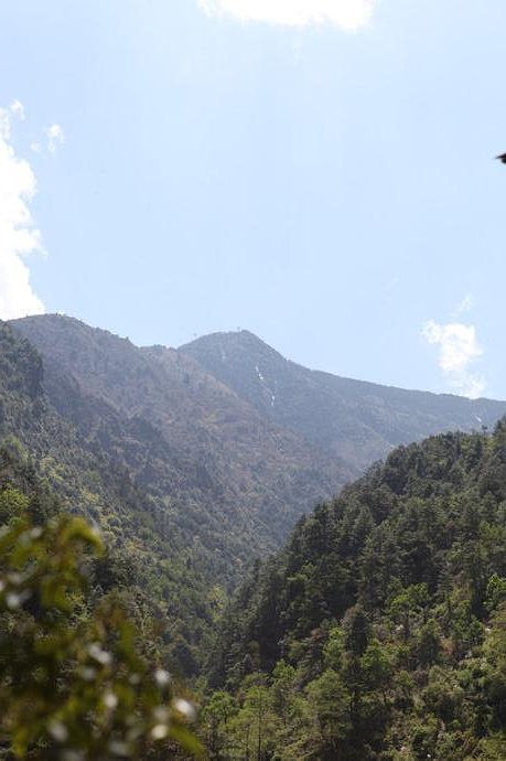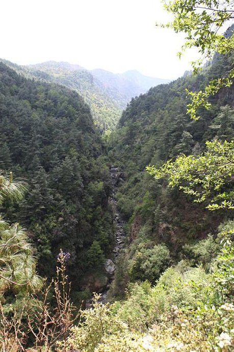 往上爬了一个小时,终于来到玉带路。其实,老乡带我们进山的入口,并不是阿翔所说的那条路。我们现在到达的这个点,还能要再往北走1.5公里,才是中和寺。而阿翔说得那条路,其实应该是中和寺索道下面的路,爬上来就是中和寺。因为时间紧迫,来不及休息,我们赶紧走向中和寺。终于来到了这传说中的吉月饭庄。