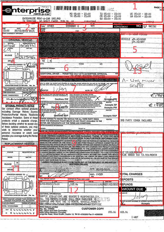 此处需要租车人签姓名的缩写以示确认,所以这部分必须细看。