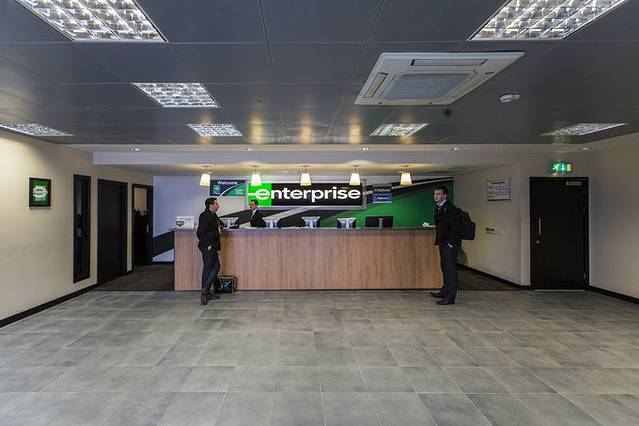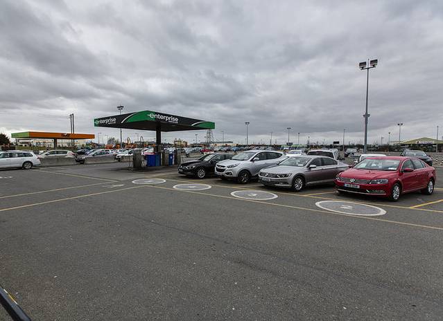 时间转到了爱尔兰的最后一天,我们来到了机场T2航站楼的租车公司接待柜台,出了到达口一直往前走,在往停车楼的路上就可以看到,是4-5家租车公司在一起,Herz,Europcar,Enterprise,budget都有柜台,这里得感谢Enterprise的接待姑娘,絮絮叨叨的跟我介绍了近一小时保险、安全、道路问题、租车、取车问题,最后用审核了信用卡和驾照付了押金后就拿到了车钥匙。