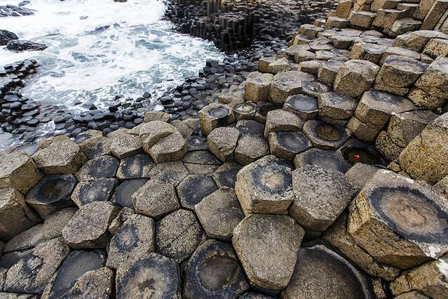 巨人之路真的是经典中的经典,六棱形的石头是靠海浪冲击天然行程,传说是苏格兰巨人和爱尔兰巨人打仗时候留下的足迹,很是震撼。