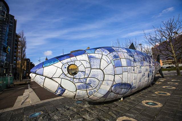 旅途终将结束,最后一天的早上,我自己驱车,独自一人去贝尔法斯特市中心,感受了一下警察叔叔检查,只要提交了驾照,就没什么,警察叔叔还是很和蔼的。早上的贝尔法斯特也堵车,都是为了互相让路所堵的车,就为了看一眼那著名的Big fish找停车位找了半个小时。