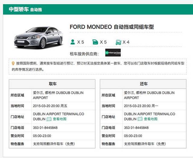 由于四个人一起自驾,我选择了Enterprise公司,也选择了中型轿车,也是怕右舵车不大适应,所以选择的还是自动挡,三下五除二就搞定了租车的环节,惠租车在这家公司有个特别有利的帮助就是提供了驾照翻译件,完全免去了去公证处花钱公证,只需要下载惠租车提供的翻译件模板,填上相应信息,贴上驾照的复印件就可以完成。