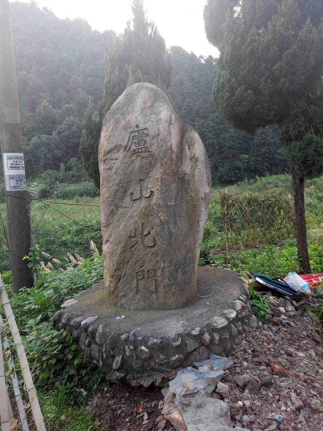 跟着地图导航走,5点37路过写着庐山北门的这块石碑。