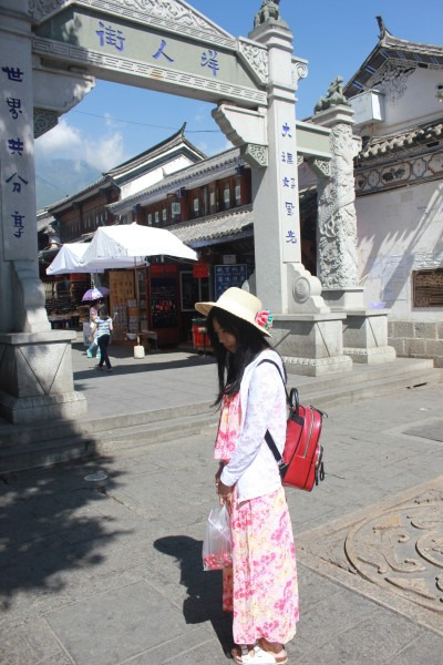 到了双廊,就拉着行李箱开始寻找我们订的客栈,那段路确实不好走,一路都是不平的,左拐右拐,偶尔上下梯级,行李箱的轮子要经得起考验才行。