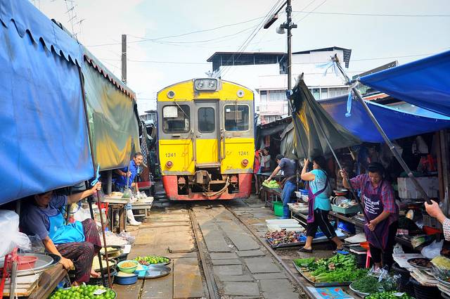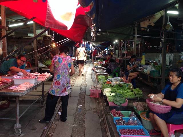 美功铁道市场:从独立广场附近坐巴士去美功铁道市场&安帕瓦水上市场,不到2小时,70泰铢一个人。白天每半小时有一班车。