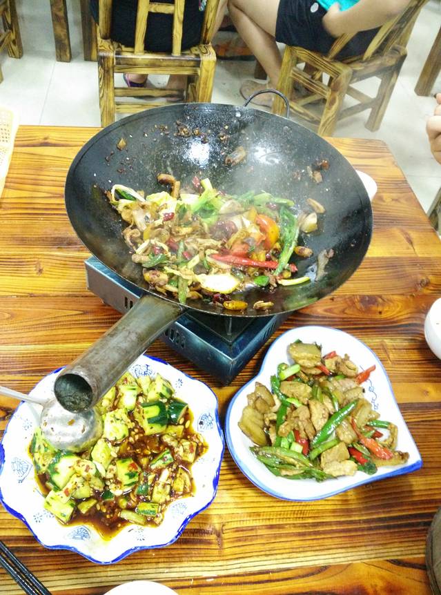 很多张家界攻略里都会出现三下锅。我们吃了两顿三下锅,我老公戏称三下锅就是湖南版的麻辣乱炖,整体味道较油腻。 分干锅和汤锅两种,我个人觉得干锅更好吃。配菜的话每个店也不同。在张家界汽车站附近团了一个农家三下锅,味道一般吧。到武陵源区后又团了一个富正毅三下锅,老字号,好像十多家分店,座椅都是矮桌矮凳,很有土家族特色,味道也更好一些。