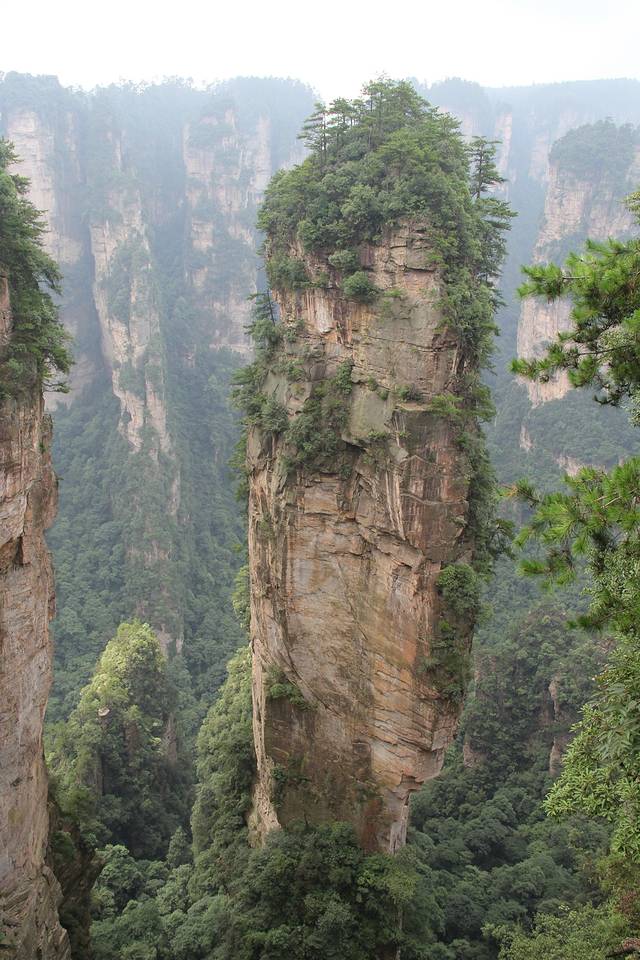 电影阿凡达中的悬浮山就是在袁家界取的景,结果阿凡达雕塑旁边人山人海,就为了和那个雕塑合个影,包括下图中的乾坤柱,我俩直接走过,人太多了!