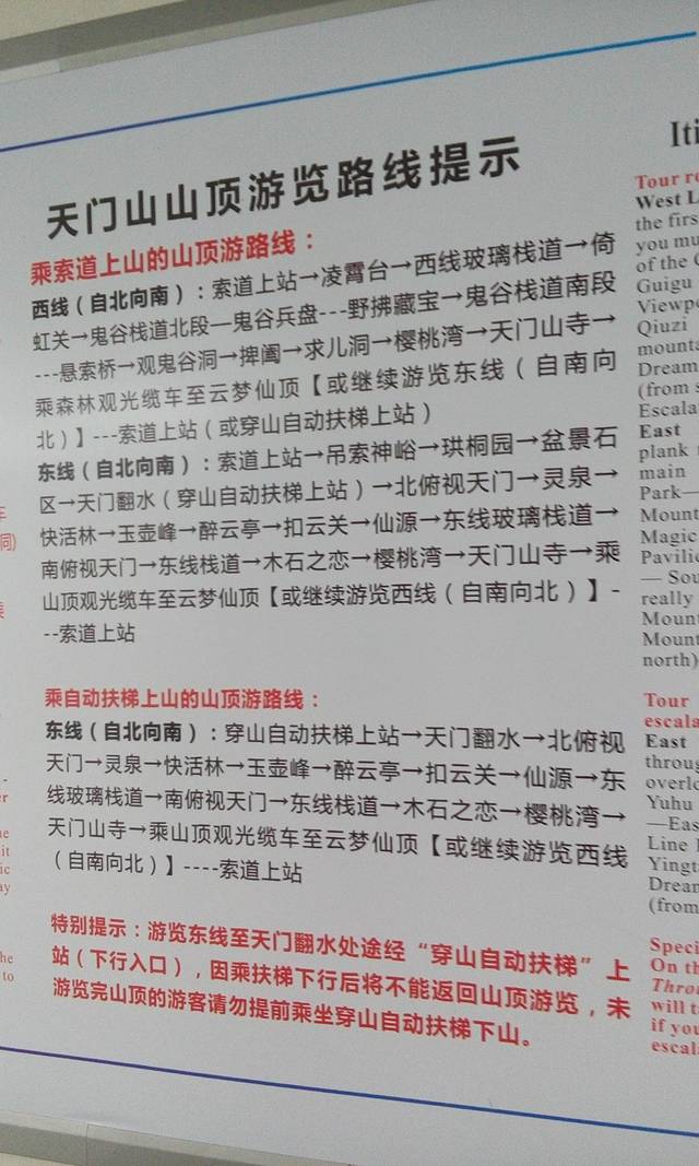 景区内自己拍的路线说明,尤其需要注意下面红色的三行字