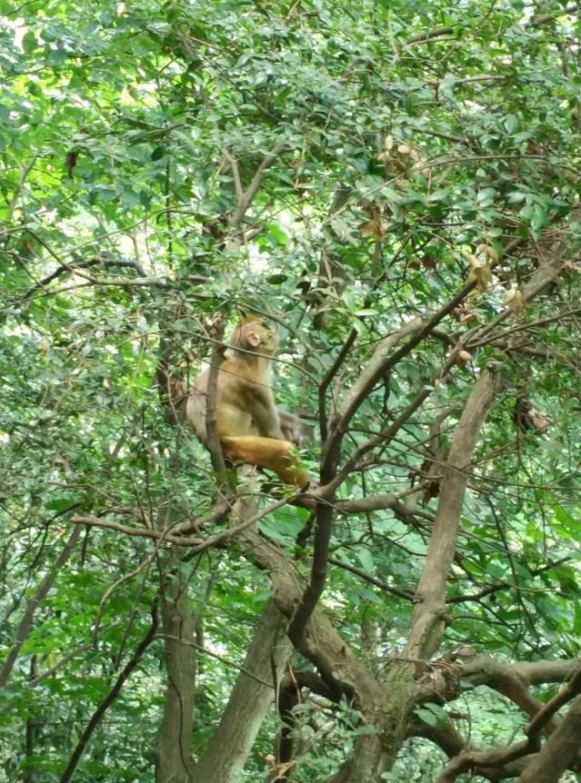 幸好当我开始害怕的时候,后面也陆续来了一些人,我们便决定结伴而行。后来再想,真的很明智。我前面有个几岁的小女孩,她看见一只身高不足十五厘米的小小猴子(确实好可爱哦),兴奋得不得了,就想用手去摸,旁边立即就有只半大的猴子给抱了回去,而一只成年大猴子就冲到小女孩面前冲她呲牙示威,我想如果不是当时有好几个大人在她旁边,那只大猴子很有可能会攻击她。