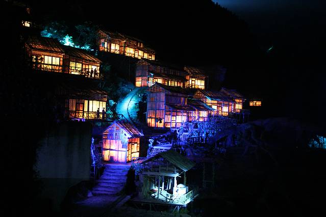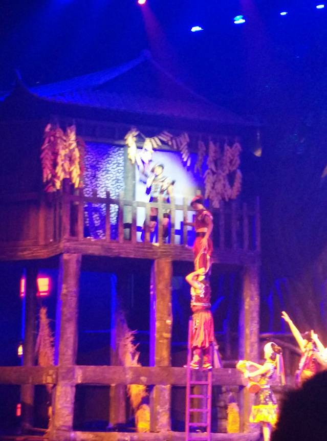 客栈老板娘给我们推荐魅力湘西(大部分室内演出,小部分在剧场院子里室外演出,天气原因室外部分会取消),说是很不错,离客栈也是步行几分钟的距离,我们从淘宝买了票(比客栈老板娘代理的要便宜很多),结果我还是很失望的。论环境,不如天门狐仙,这个是室内的,你唯一能看到的就是一个普通的舞台和两边主持人如幽灵般出现的站台,而且座椅很窄,坐着很不舒服;论演出内容,基本上全是歌舞,而且不如天门狐仙有故事性,唯一还可以的是杂技的部分。至于室外院子里的演出,更像是江湖杂耍。就室内演出而言,完全不及我在泰国看的暹罗缤纷剧场精彩。票上说是九点开始,结果入场已经九点多了,入了场还有字画拍卖,正儿八经的演出开始得快九点半了,反正我是特别不推荐啊。