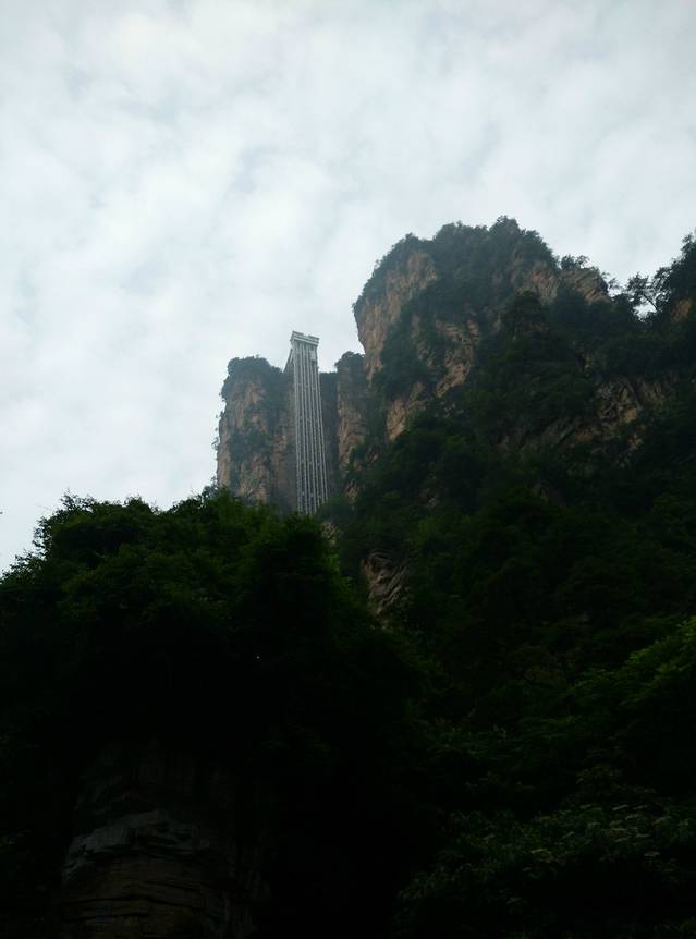 标志门入园后,乘坐环保车至白龙天梯下站站点下车,买百龙天梯的单程票(也是自动售票机比人工窗口更快),开始排队。这里我要开始吐槽啦!我是8:09买完票,整整排了两个小时才上天梯,而天梯单程上山运行才一分五十八秒!排队的时候拐个弯发现,还有一段,再排到头拐个弯又发现还有一段,就这样一直排一直排,拐了无数个弯才排到。所以再次建议大家旺季游玩张家界,一定要早起,早回休息,其次要制定一个与旅游团最好反方向的路线,就像我在“行前准备”里推荐的一样。