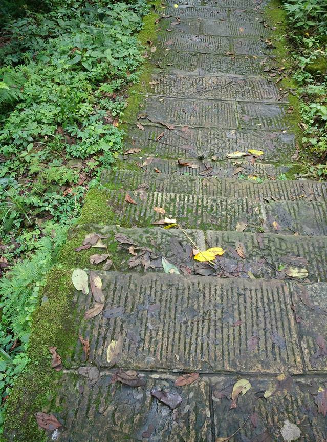 厚厚的青苔,湿滑的山路