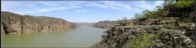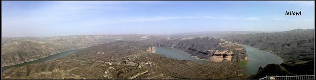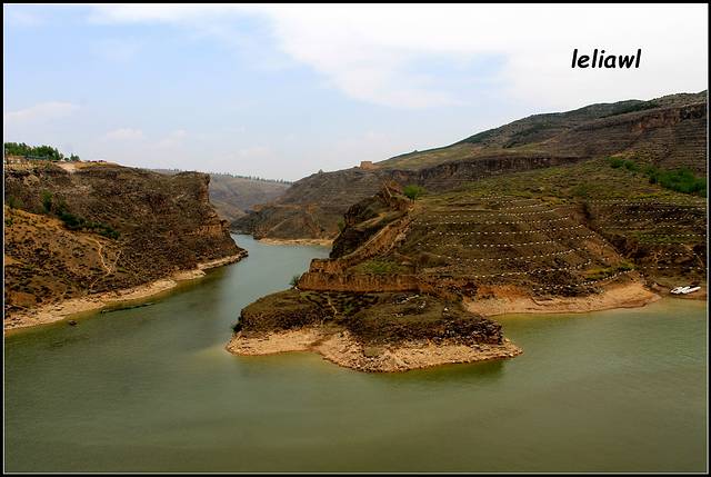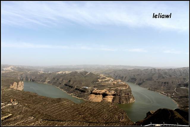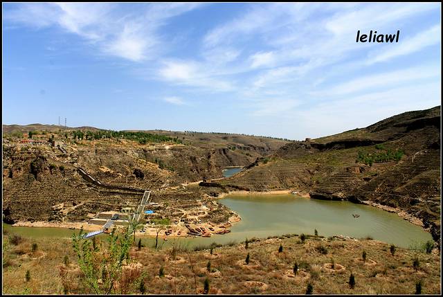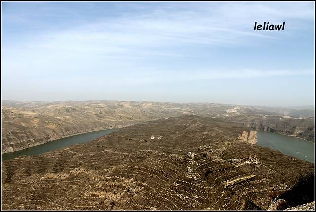 8点半出发,依旧跟着导航走,结果走到了莫名其妙的道路上,记得很多帖子上都写着穿过县城,有一中石油,右转没多远就看到牌子左面是偏关,右边是去老牛湾,的确看到了中石油,也有个牌子可左边是偏关,右边不是老牛湾呀,当时就觉得怪怪的,但也跟着导航走了,结果就路标是往喇嘛湾方向,我们还疑惑是不是当地叫老牛湾就是喇嘛湾?接着就被带到了一条山间小路上,然后导航说目的地就在您的左方!立刻晕倒,停车又查了半天,终于对面过来了一辆小车,打听打听,话还听得不是太懂,不过他说一直下去就到黄河边的大路了,沿着黄河一直走就能到啦,ok吧,总算不用让我往回开,欣慰欣慰!果不其然开了没多久就到了黄河边,看到这条大路才踏实点,终于看到些小轿车了!!这是沿黄公路,顺着黄河风景不错,也算是没白走这些道吧!