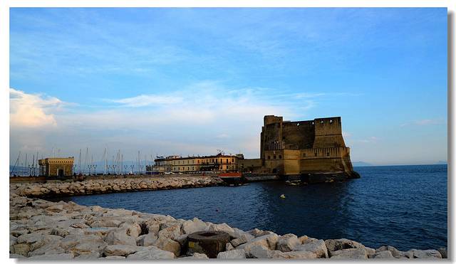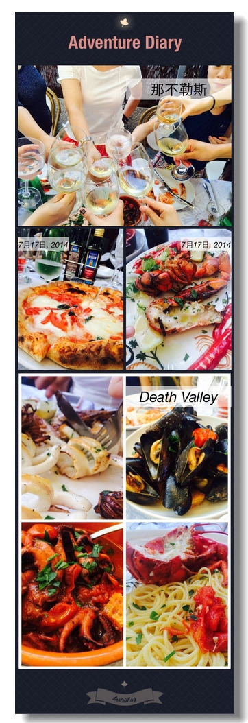 张导对意大利美食推崇备至,世界美食排名靠前的一般都有意大利、法国,意式大餐自成风格。特别是意大利南方多美食,那不勒斯是港口城市,吃什么?当然是海鲜大餐。于是,晚饭我们来到了古堡旁的类似一个海鲜夜排档的地方吃所谓意式海鲜大餐。这一顿吃了我们435欧,至于口味,我告诉你:看起来很好吃。 所以,上面那四张照片就很明了了:古堡、渔港、看上去很好吃的大餐和假装吃的很换的我们。。