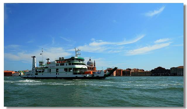 从佛罗伦萨开车到威尼斯已是中午,我们中饭后进岛。张导说进岛坐客轮没人14欧单趟,我们11人直接打水上TAXI是150欧单趟。相对更快捷,一比较答案不言而喻,于是我们打了水的进岛。
