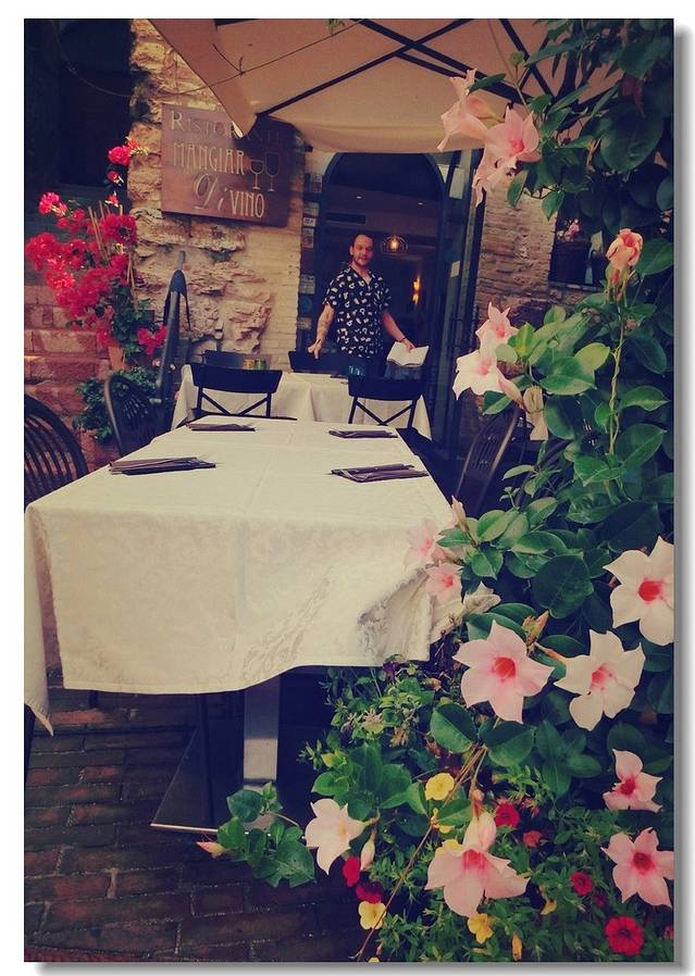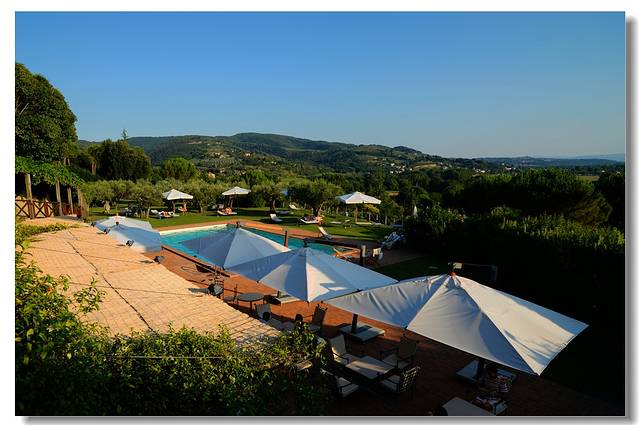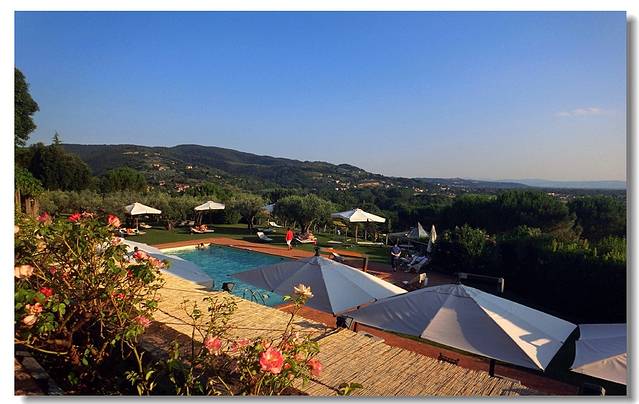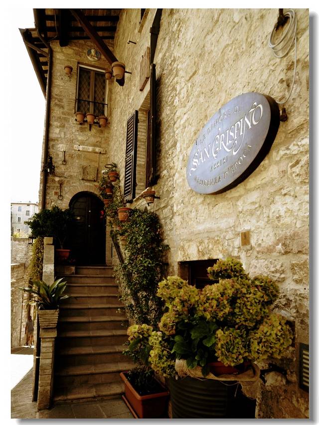 这个酒店必须强力推荐,是我们此次行程中感觉最好的酒店。酒店坐落在离佩鲁贾10公里左右一个叫TORGIANO的古镇上,或许应该叫村庄。石头房子、石头城墙、石头小径,石头窗台上鲜花盛开,幽静又不失腔调。推开老式的木头窗户,窗外大片的葡萄园依偎在一片丘陵的怀抱,青绿交替,让我不由得想到一个词:远山如黛。