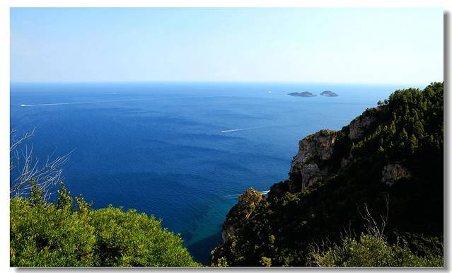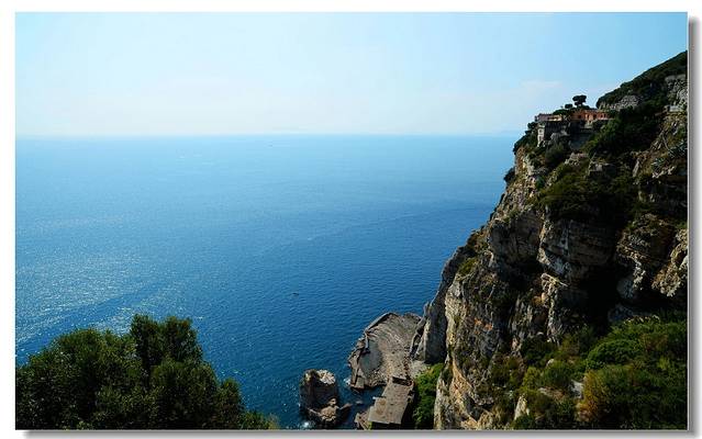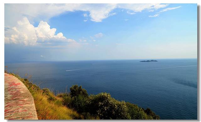 波西塔诺离那不勒斯并不远,大概50KM左右,但是因为公路而建,只有单向两车道,而且很少停车地方,所以进去颇费时间,整条公路停车相当麻烦,但是每隔几公里路边还是会有一个可供两到三辆车停靠的观景台。这是我们停靠的第一个观景台,悬崖下的小镇,蔚蓝的地中海,风光旖旎。。。