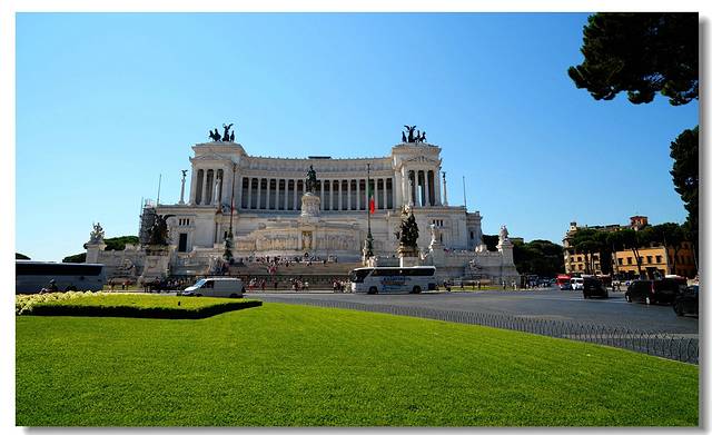 维克多伊曼纽二世于1871年统一意大利,为了纪念此事,1911年建了纪念堂。这是一座巨大的白色建筑,从很远的地方也能看到,是现代罗马的象征。正面骑马的雕像就是维克多伊曼纽二世,其下面有无名战士之墓,进去后,可以爬到建筑的上面,再乘坐电梯到建筑最高处。维克多伊曼纽是意大利的国父,意大利现有版图就是他统一的,之后到各个城市都能见到他的雕像。据说各国元首访问意大利,敬献鲜花都在这里。。。。