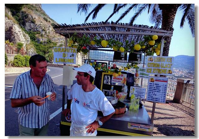 之后的每个观景台停下,都有一个车位被这种小贩的摊位给占了。意大利也有这种打游击的流动摊贩,越到小镇里面这种摊贩越多,占地越大。。。