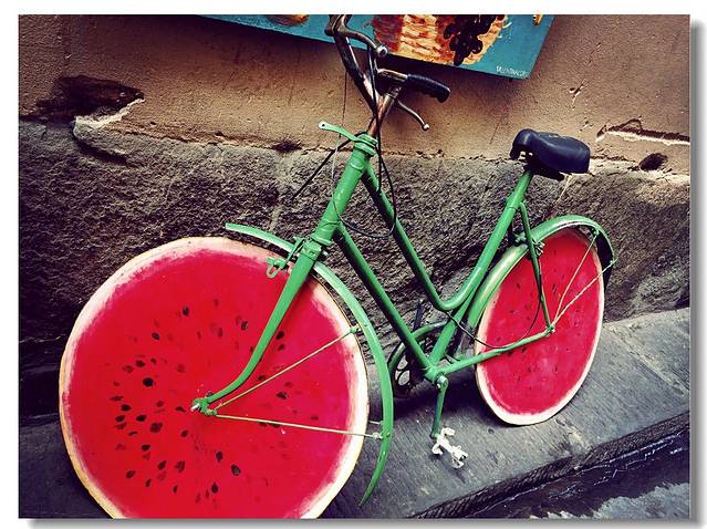 佛罗伦萨是颇具绅士格调的城市,是欧洲文艺复兴发源地,所以这里的一切似乎很散发着文艺的气息。街边的盘景,遛狗的男人、女人和老人,一辆不能骑的西瓜自行车,亦或是其实不怎么“大”的大卫。。。。