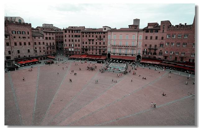 扇形广场是锡耶纳的灵魂所在,广场的祭坛上每天都有公开弥撒,由于住房和商店都面向广场而
