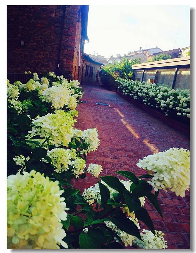 大堂CHECK IN间隙,我出来酒店外面稍转悠了下。。。周围景致很和谐。绿意盎然,鲜花怒放,石径青瓦,意大利乡村风扑面而来。。。