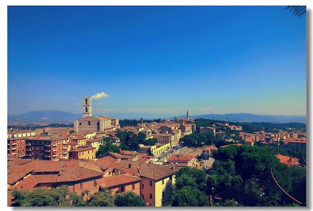 佩鲁贾老城依山而建,站在城头极目远处,天际一朵云,像远处塔楼冒出的一缕烟,顿时觉得佩鲁贾的天空都好文艺,有没有?