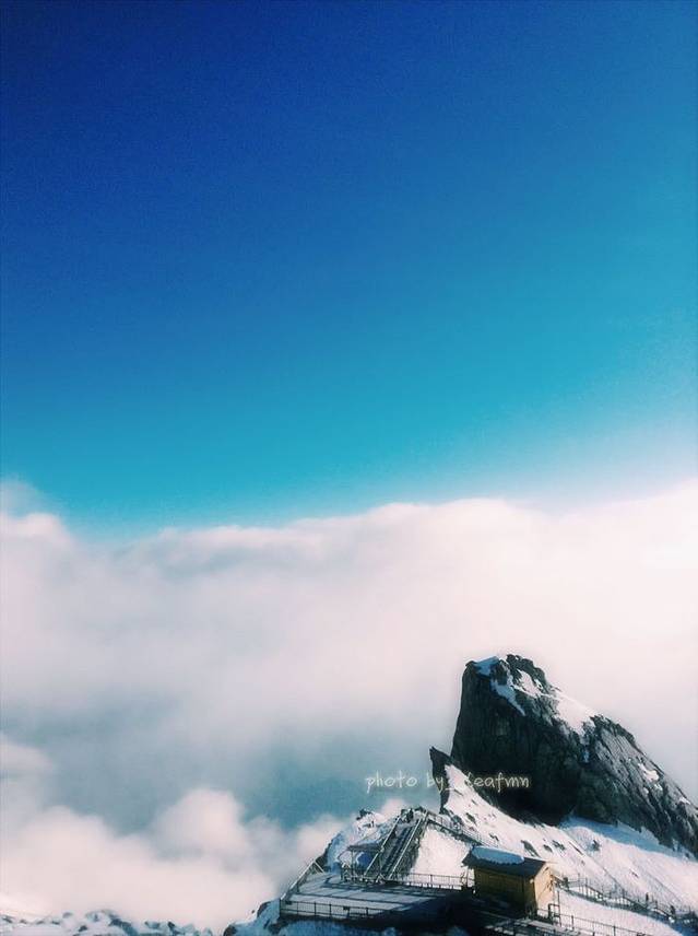 4506。翻到一张。这是初上索道的高度。我爬山那日云层缭绕的雪山,可谓云带束腰。初登时天朦朦未亮,太阳是在缆车之上升起的,霞光甚美,映着山脊一片金色,那时万里无云。云层在登山时慢慢聚集,行至半山腰再下望之时就隐约有云山雾海之意了,待到我气喘吁吁的站在离索道不过100多海拔的峰顶时,下面已经宛若仙境般云层交叠,丝丝缕缕蔓延开来,此时此刻,也只有默念一句也算是不枉此行了…。这几张也是很中意的剩下的照片,喜欢爬山做功的朋友是可以一行的。锁道也好,氧气瓶也好,严寒也好,导游的威逼和恐吓也好,都不能阻止你去作一作死,这就是乐趣。