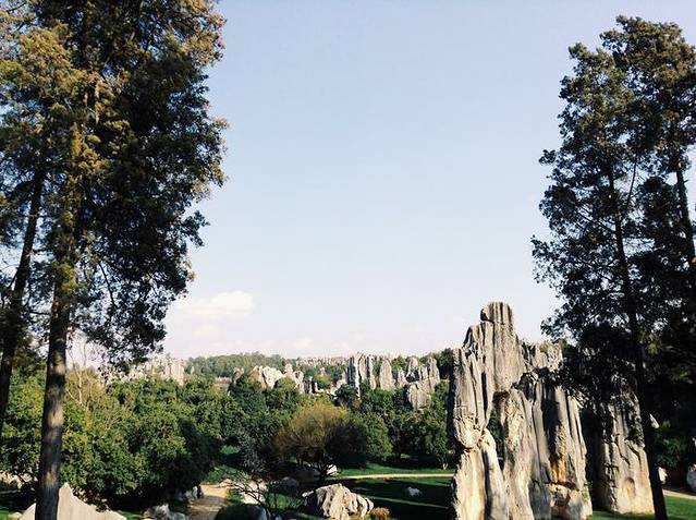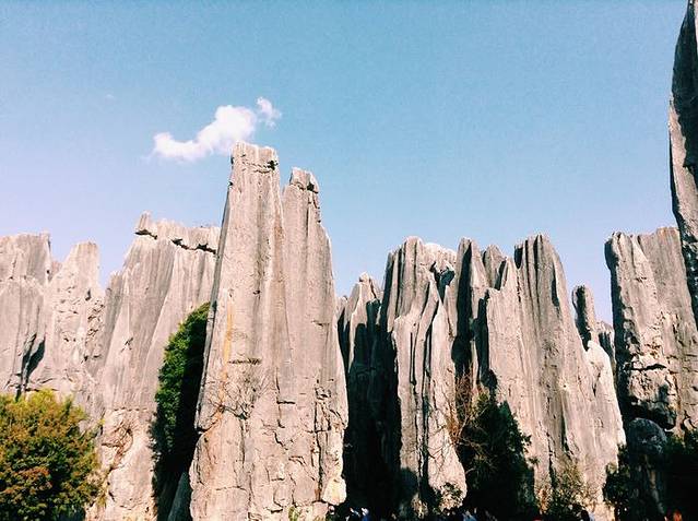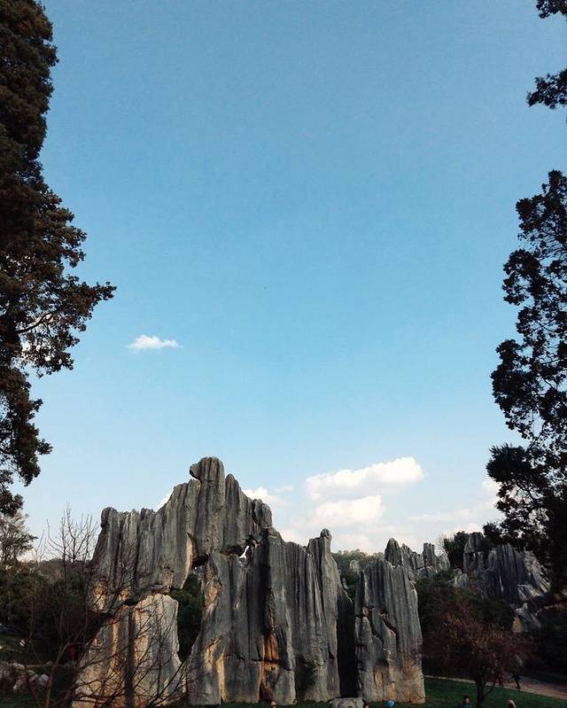 捌章—石林。这是几千年前的海底奇观,是不曾人工雕琢的自然之力。说实话这里不好玩,你抬眼望去不过是大小各异的怪石嶙峋对上郁郁葱葱的林木。对于一些人来说,这里了无生趣,对于一些人来说,它掩映了历史,它描绘了自然,它是波澜壮阔的史诗,它是不会腐朽的篇章。如若我能登顶俯瞰,必有一种天下雄奇在脚下的雄壮感。阿诗玛导游介绍和给出的景色都过柔和,故事也唯美。我却莫名在这里升起一种,纵然君王为眉间一点朱砂倾覆了江山,我也可以横刀立马独守大唐魂的错觉。shenmegui!(╯‵□′)╯︵┻━┻!脑洞到这里就该结束了,故事到这里也结尾了,晚安。