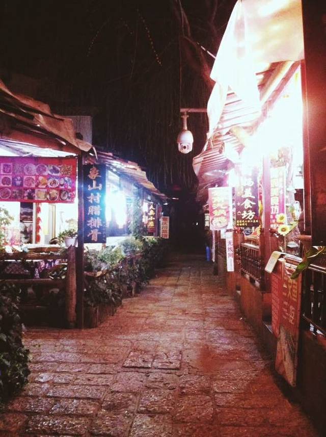 叁章—丽江。初到丽江的第一个晚上,除了睡觉已经别无选择,下榻的酒店是丽江外郊的束河古镇。照片拍的不好,因为我并没有在阳光下好好看看这个小镇的机会。偏执如我在洗过澡之后跑出来,所有才留有这些昏黄不堪的剪影。镇子小且古朴,是传统的韵味,到了夜里街上寂静得很,来往的都是寥寥不干心早睡的游客,镇外的入口有个不大不小的门廊,小亭子外系着密密麻麻的许愿铃,可惜没有拍到。镇中的戏台倒是颇得我心意,四周开阔,像是个小广场,正上书“四方听音”几个大字,脑洞如我这般者是可以幻想一下白日里有怎样游人如织的景象。偶然间抬头看天,才算是得到了不枉我半夜跑出来走酸了脚的回报,呵呵。酒店虽则普通,但内里也是一栋一栋分门别类的几个四合院落,小天井下也是亭台桌椅,别有雅致。照片看过之后,是否有随时会跑出几个阿飘的感觉呢