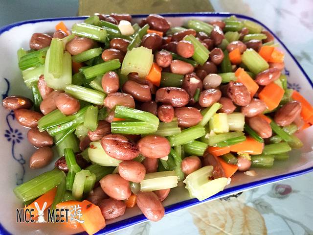 我都不想介绍了,这是一盘拌芹菜花生胡萝卜。清新的芹菜,爽口清脆,入味的花生,美味留香,营养的胡萝卜,我不爱吃。——周先生注了好多次。