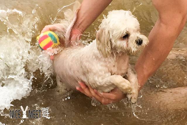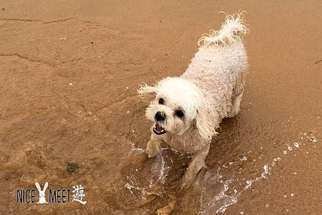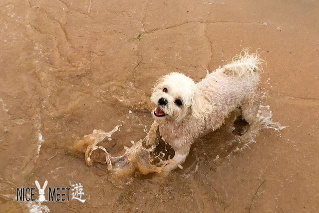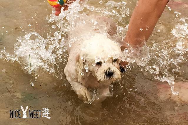 周末带着汪星人来海边见识见识,发现这里也是狗狗们的戏水乐园,小Q童鞋还是很害羞的嘛,迟迟不敢下水,看看人家小白在水里早已玩得不亦乐乎了呢!
