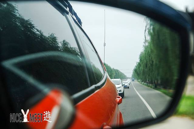 从后视镜看看车队,还挺整齐。