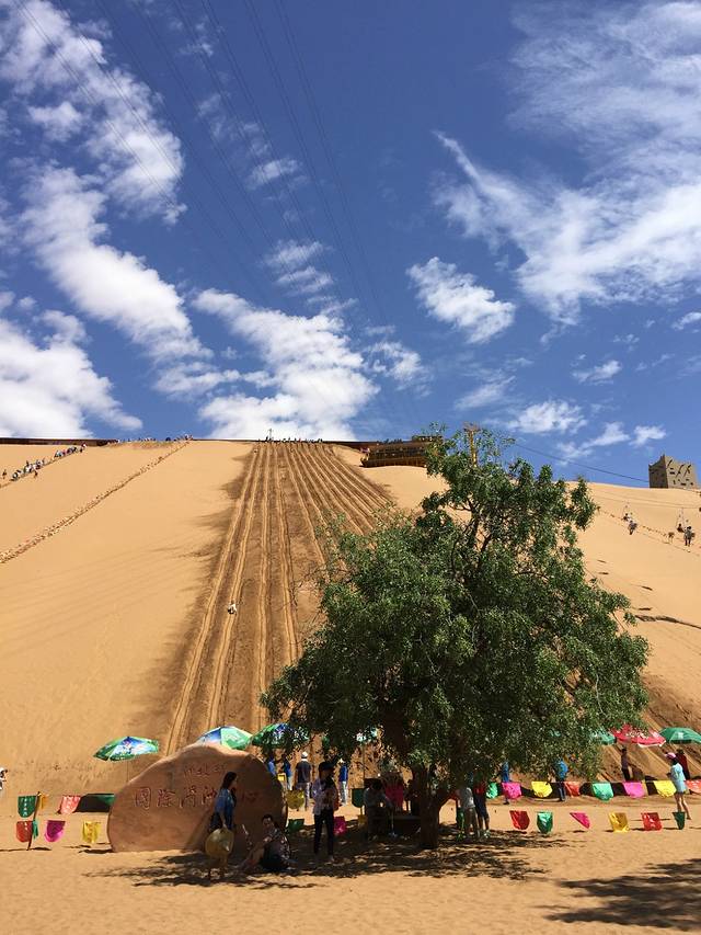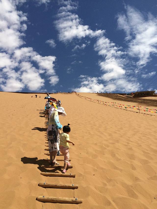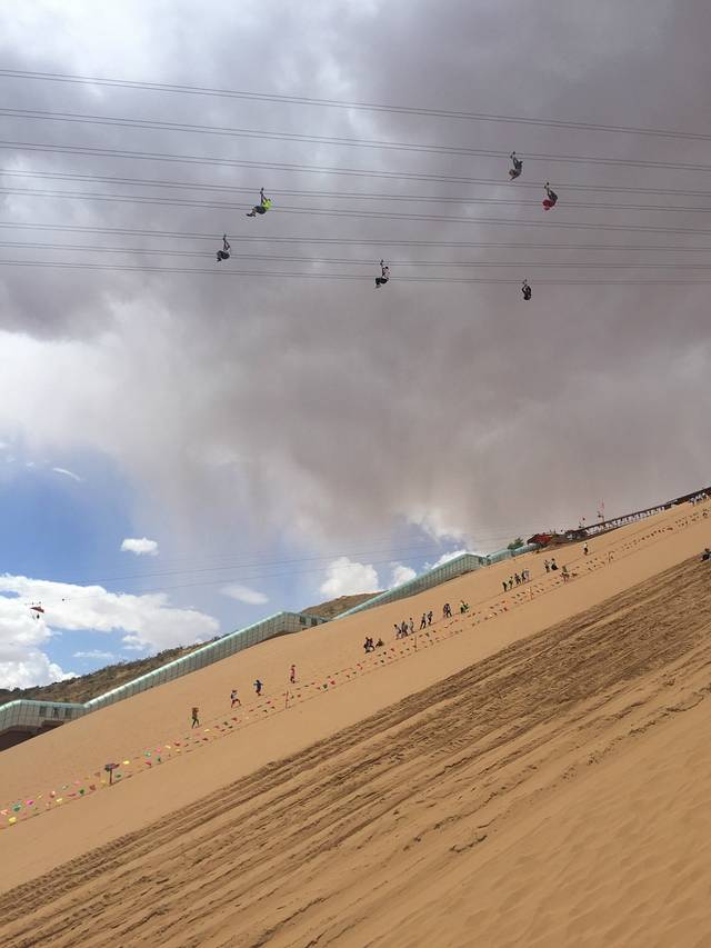 沙坡头的气候变化非常快,看着天边飘过来一朵黑云,它就敢给你下个老半天雨。没一会又晴了。在这玩的感想就是将来孩子三四岁还能带他到这里玩,这里的沙子非常细,很舒服,是孩子游戏的天堂。