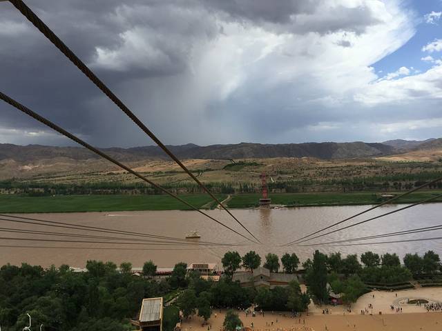 黄河索道,被戏称为“飞黄腾达”。从沙漠向对面快速滑去,再从对面滑到照片下面的建筑。这项娱乐是双向的,很刺激。