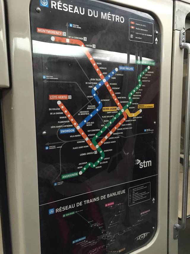 蒙特利尔的地铁站没有多伦多好,是因为大部分地铁站都没有升降电梯,我姐姐带着宝宝出行,婴儿车抬上抬下真的是。一张票CAD3.25,如果一天乘坐交通工具超过3次,买张day pass吧,CAD11左右,随便乘